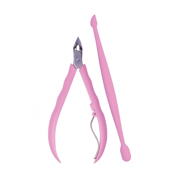 ALICATE CUTÍCULA + ESPÁTULA ROSA SANDY 756 MUNDIAL